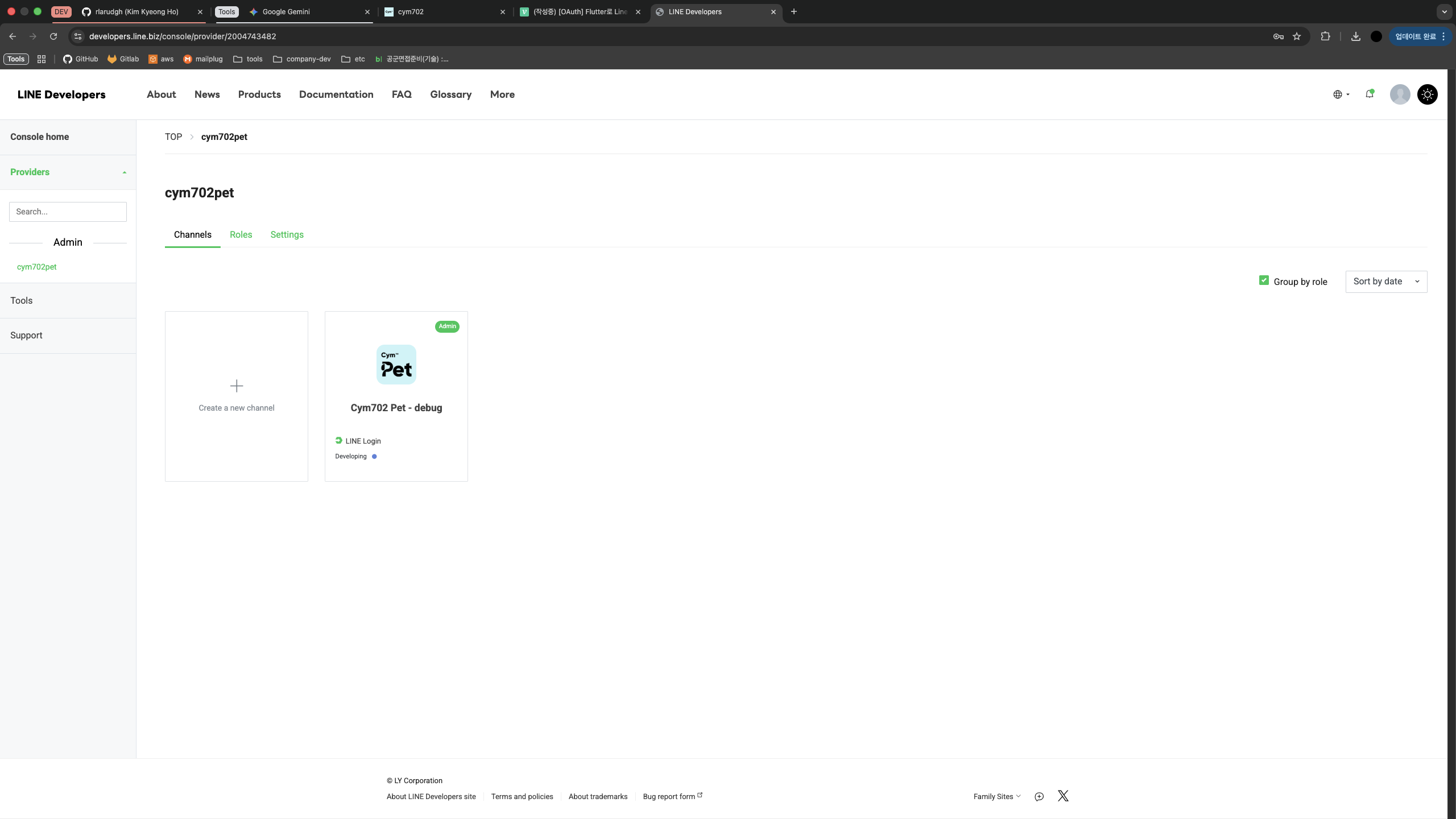 우선적으로 라인 인증 서비스를 구축해줍니다.